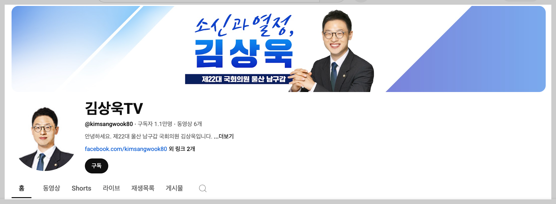 1.1 만명의 유튜브 팔로워를 보유하고 있습니다.위의 링크를 통해 주요 정책 및 근황을 확인 할 수 있습니다.