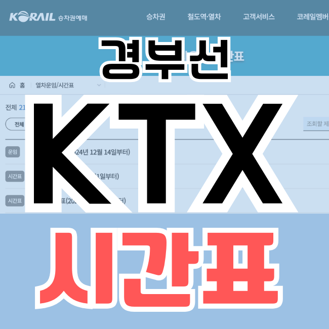 KTX 시간표 예매 방법 및 시간표 조회는 아래의 글에서 확인 가능합니다.☺️